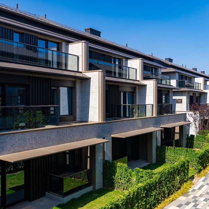 Located in Songjiang District, Shanghai, this residential project is surrounded by Peigou stream and Caijiabang Road. With a plot ratio of 1.1 and green space ratio of 35%, the land covers a site area of 33,539.2 m2 and a gross floor area of 32,528 m2. It is developed into low-density residences providing 262 units with various layouts such as low-rise apartments, villas and duplexes.